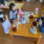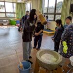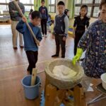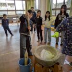 臼と杵を使い、餅つきをしました。